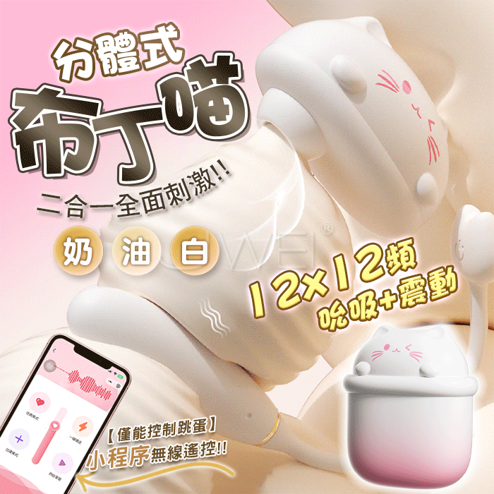 謎姬 MizzZee.布丁喵.12x12頻吮吸激顫 APP智能遠控分體式萌貓變頻跳蛋【漸變奶油白】