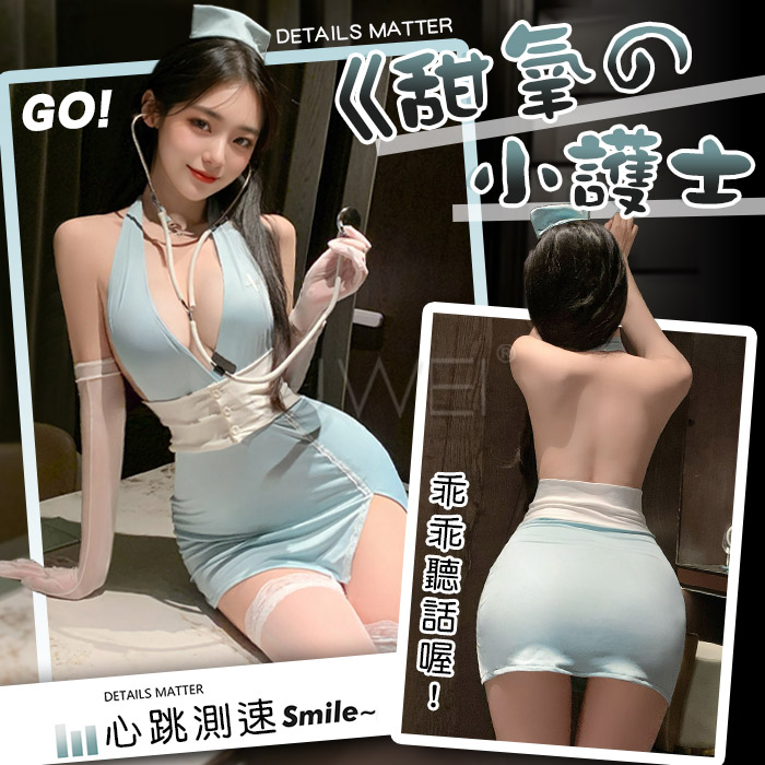 | 仿水手角色扮演網衣!吊襪帶深V中空四件式套裝