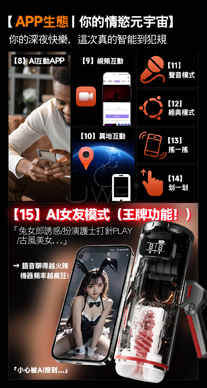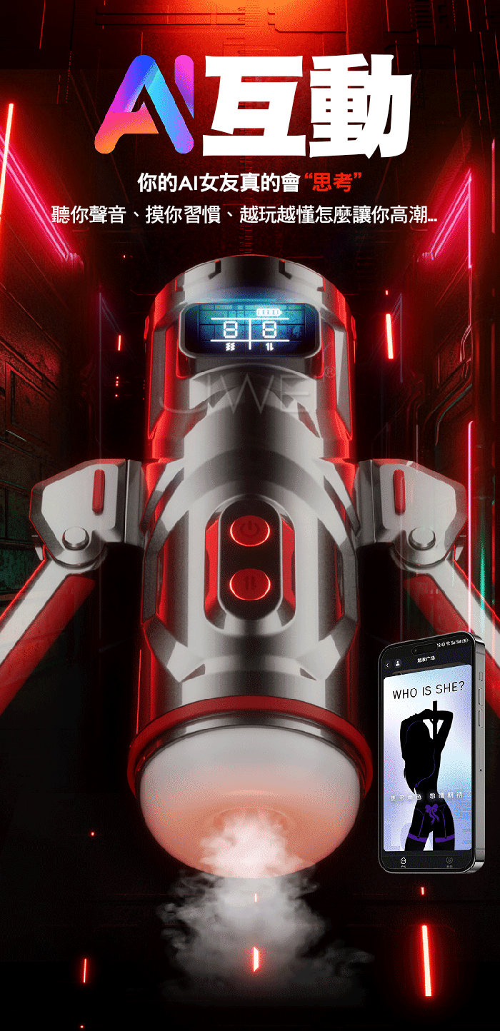 | 戰魂.9x9頻伸縮爆酥爽激震 AI女友語音聊鹹智能自慰杯