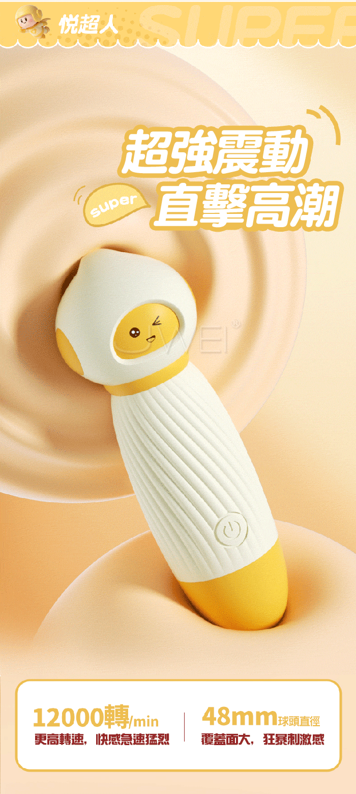 SUPER!!萌物猛攻~悅超人震動棒!玩轉“高潮”~~ 老司機只選AV棒,蜜豆刺激才是真高潮,悅超人一觸即潮! 超強震動12000轉/min急速猛烈,48mm球頭直徑,覆蓋面大狂暴刺激感 直擊高潮,從頭頂酥麻到腳尖!獨特小觸角花式撩逗,感受別樣刺激! ■尺寸:大小詳如圖片標示 ■材質:矽膠、ABS ■供電:USB直插充電 ■特色:10段震動