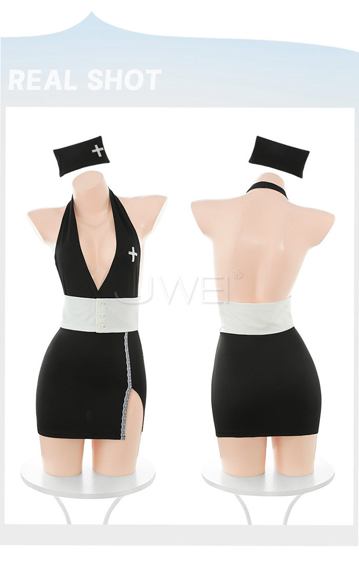 ►您現在的位置:首頁>甜氧小護士.私人護士深V露溝微開衩包臀連身裙-黑色【帽子+洋裝+T褲】