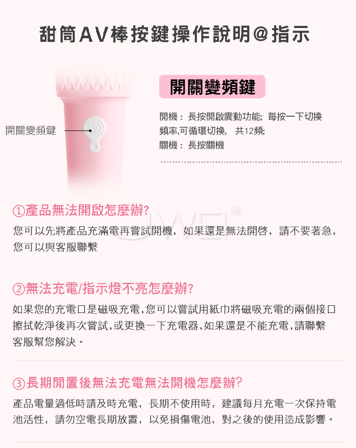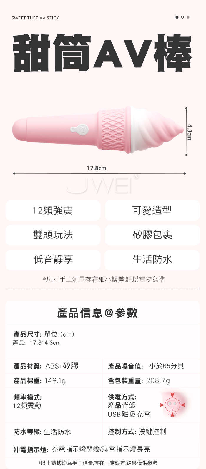 Q萌激震高潮大師,外撩AV棒+入體震動棒,外撩蜜豆,淺入花心 12個模式隨心切換一鍵開啟,輻射整片酥麻,強勁馬達熱烈迎合你的每一次 尾部可入體震顫夠快夠刺激,G點高潮的快樂你值得擁有~ ■尺寸:大小詳如圖片標示 ■材質:TPE+ABS ■供電:磁吸充電 ■功能:12頻震動