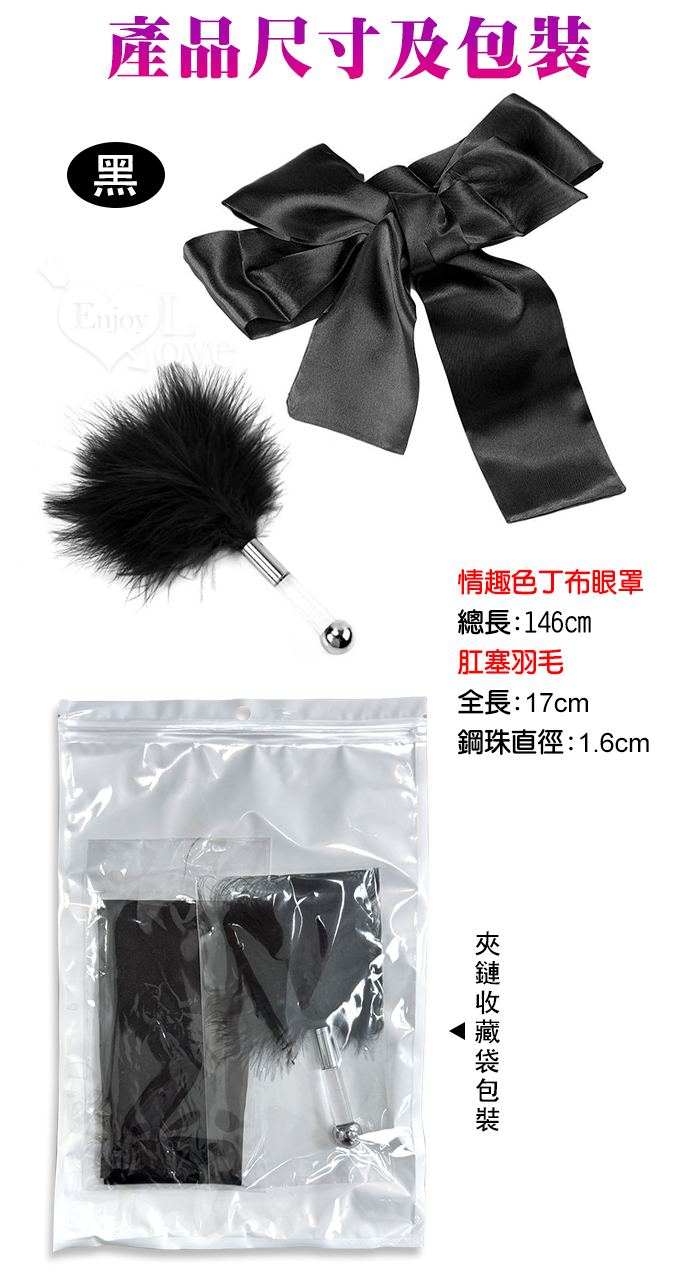 色丁布蒙眼罩+肛塞羽毛套装﹝挑逗+裝扮刺激﹞經典黑
