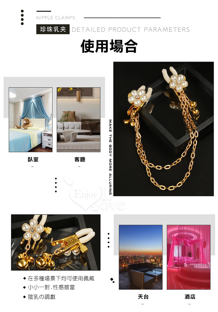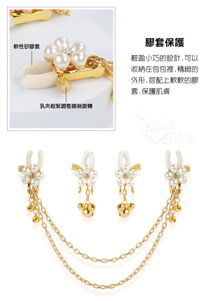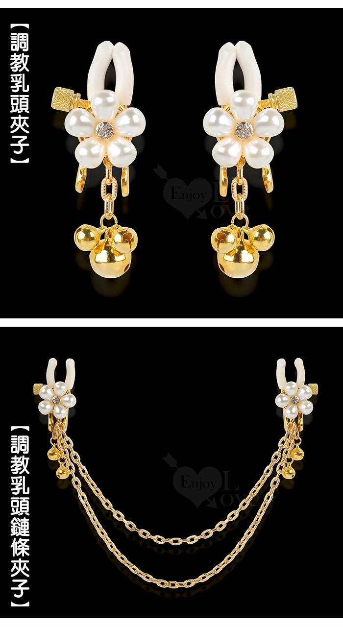 【乳の調戲】高檔珍珠花瓣鈴鐺乳夾~女用調教乳頭夾子﹝一對裝﹞