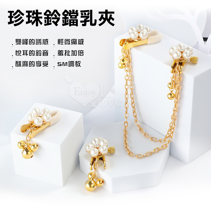 【乳の調戲】高檔珍珠花瓣鈴鐺乳夾~女用調教乳頭鏈條夾子﹝一對裝﹞