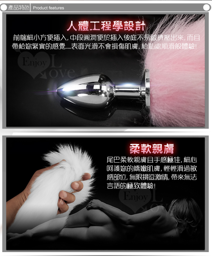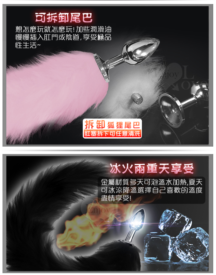激性扮演狐狸精 ‧ 不銹鋼後庭肛塞+尾巴毛 - 粉﹝S 可組裝拆卸﹞