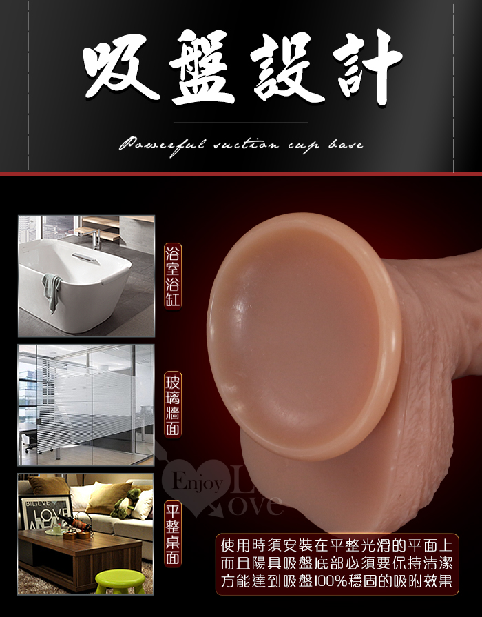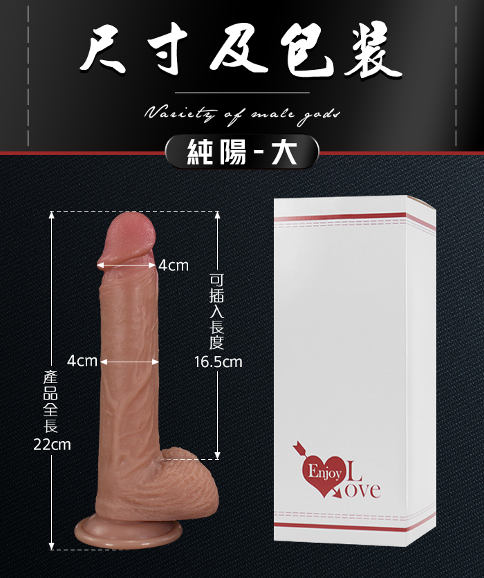 Enjoy Love ‧ 純陽 仿真皺紋凸筋/液態矽膠/軟Q肉彈 加固吸盤老二棒﹝大﹞