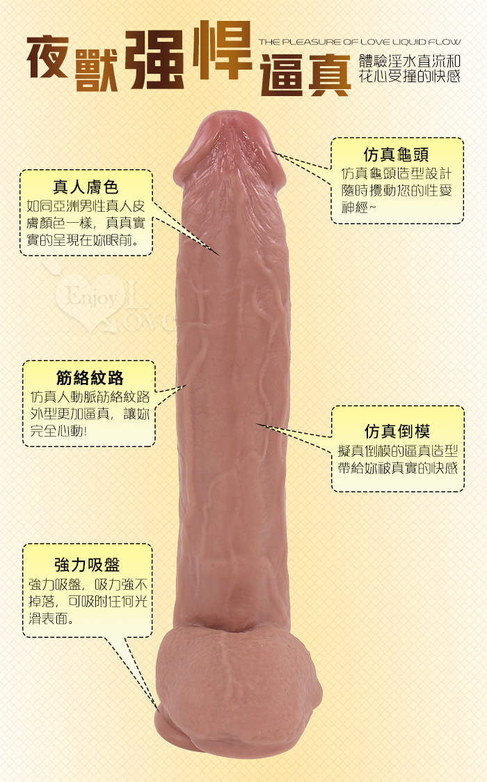 Enjoy Love 陽根三雄 ‧ 夜獸 大仿真筋絡皮紋液態矽膠肉感吸盤超級陽具﹝XXXL﹞