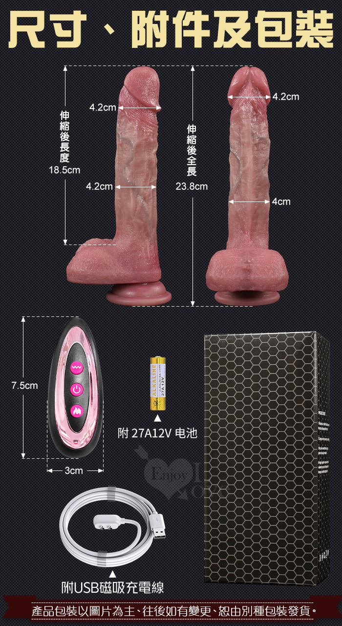 | 北美猛男 ‧ 無線遙控抽送撞擊 液態矽膠超肉感逼真大老二﹝強勁蠕動伸縮震動+加溫+吸盤+磁吸充電﹞