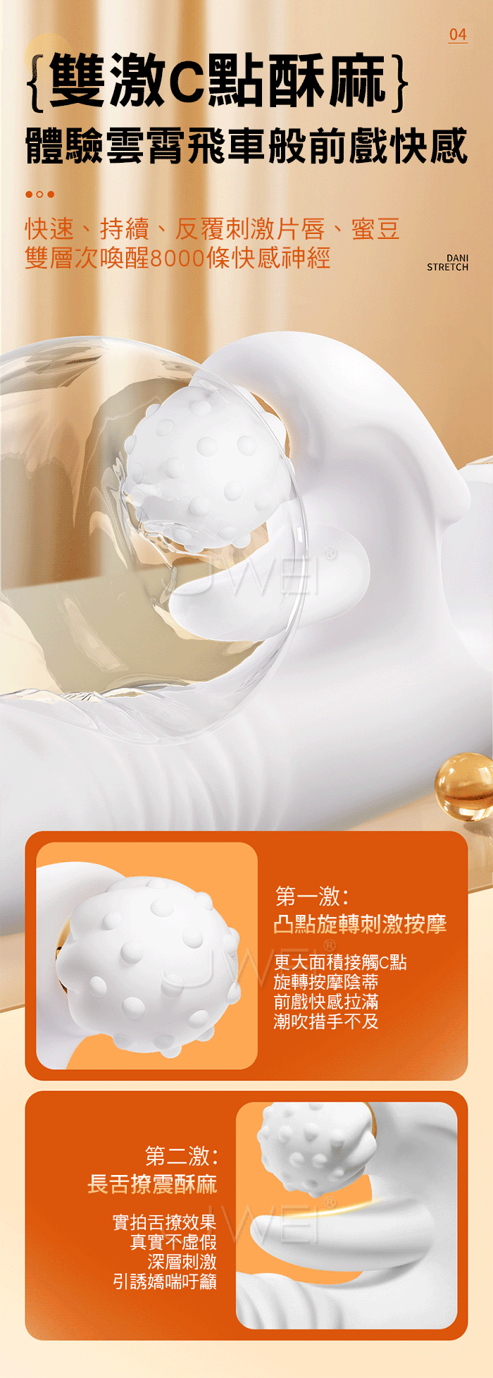 [丹妮伸縮舌舔]轉珠震動棒,專為追求更強高潮快感女性研發