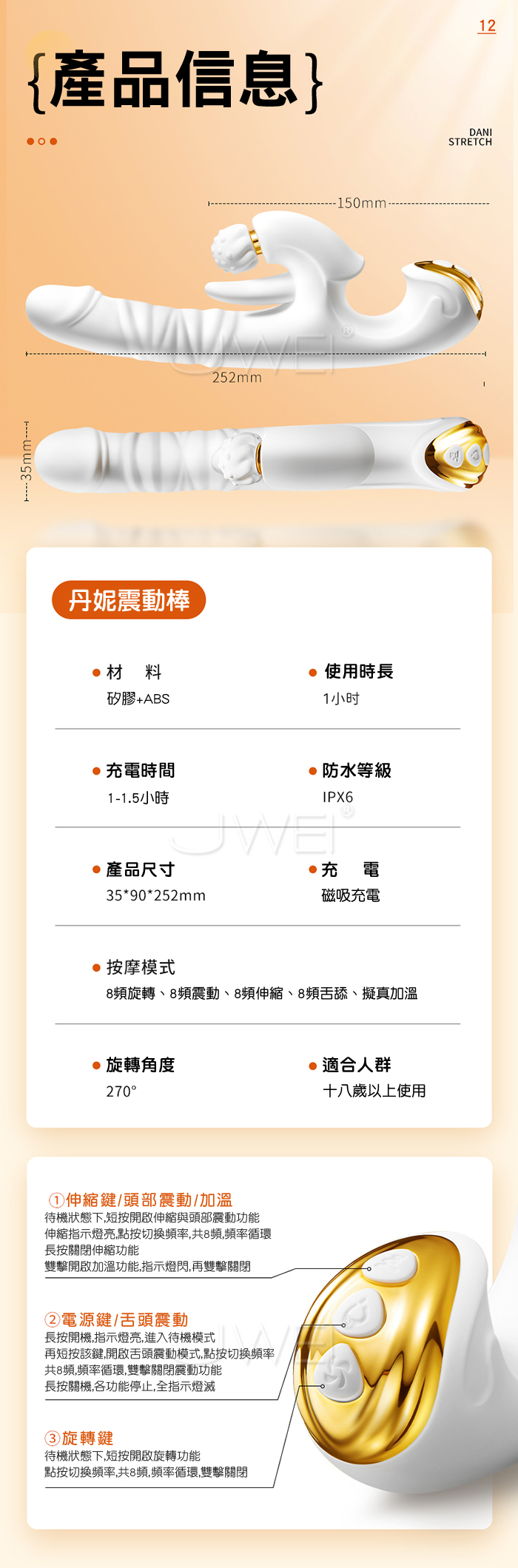 ■特色: 8頻旋轉、8頻震動、8頻伸縮、8頻舌舔、加溫