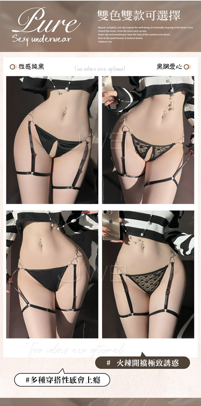 極夜誘惑.愛心鏈條綴腰吊帶低腰開襠褲【黑】