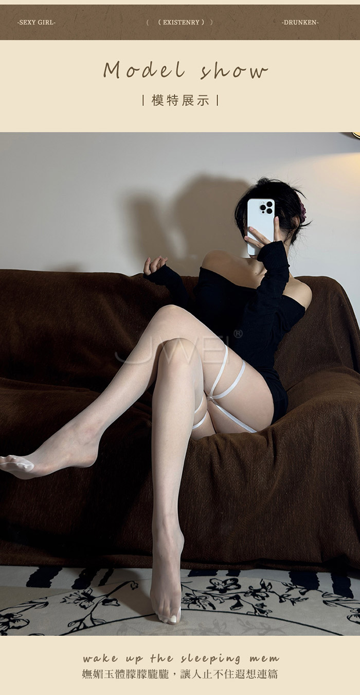 | 曖昧圓舞曲.純欲一體式吊帶腿環長筒絲襪【紅】