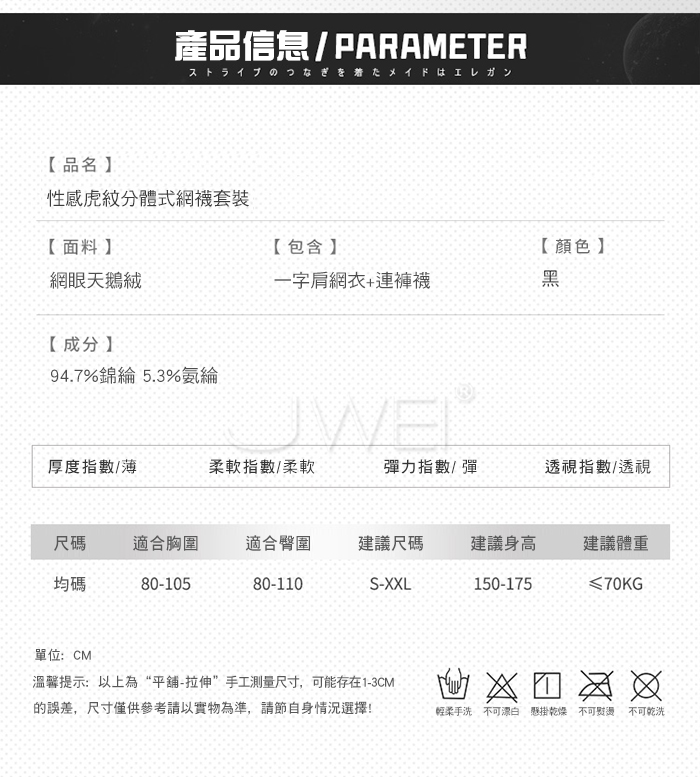 ■內容物:一字肩網衣+連褲襪