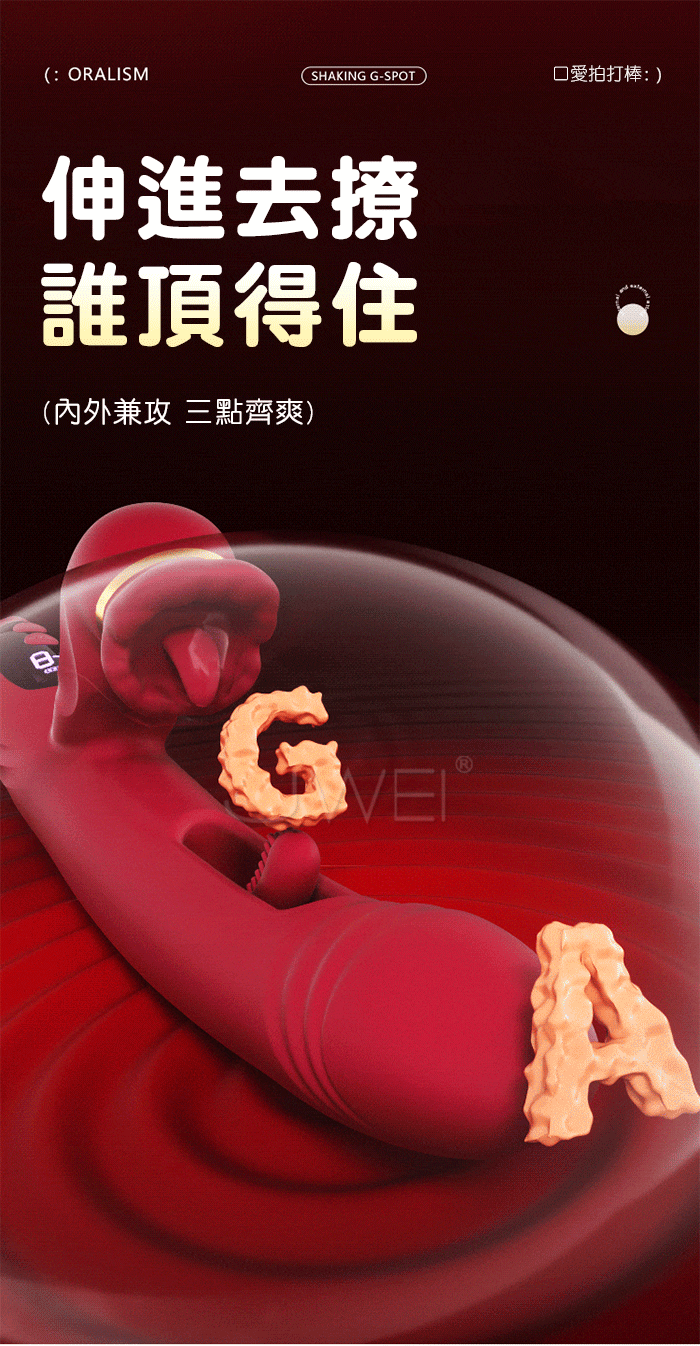 | 謎姬 MizzZee.口愛鏤空.9x9頻G點摳拍+舌舔強震 裹含外吟數顯屏按摩棒