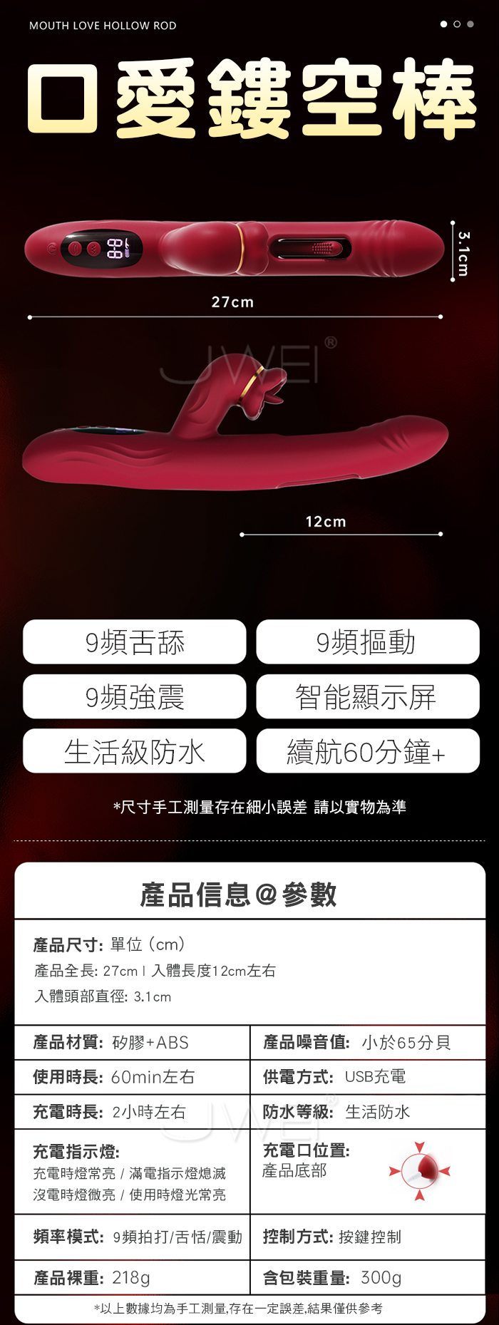 ■功能: 9頻舌舔、9頻強震、9頻摳動