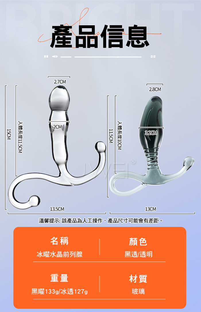 懂您所要 給您所需,爆爽前列腺 冰透款-適合新手/圓潤易入/手指粗細/會陰按摩/便利扣環/收腰固定 黑耀款-適合老手/圓潤尖頭/滿足感強/刺激紋路/會陰按摩/收腰固定 產品規格 ■材質: 玻璃 ■規格: 詳如圖片標示