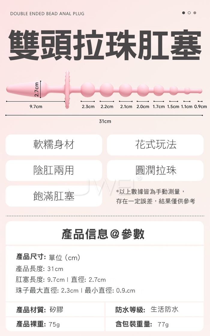 | 謎姬 MizzZee.雙頭拉珠.雙頭體驗圓潤八連還拉珠矽膠肛塞