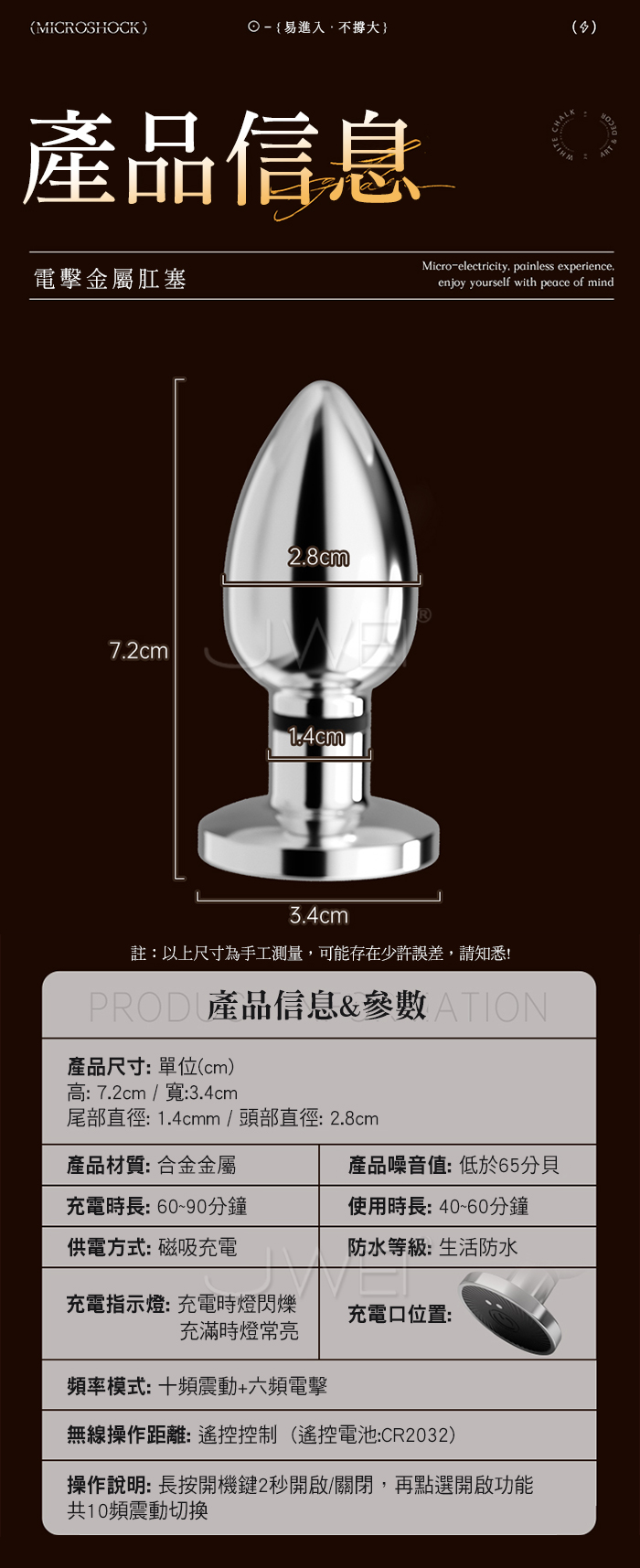 微電擊金屬後庭調教塞,微電不痛 安心玩