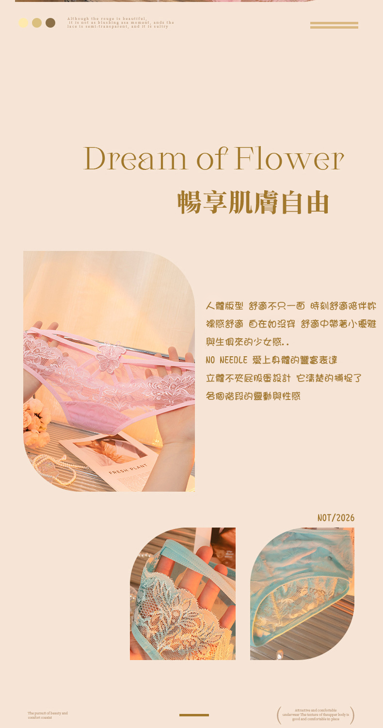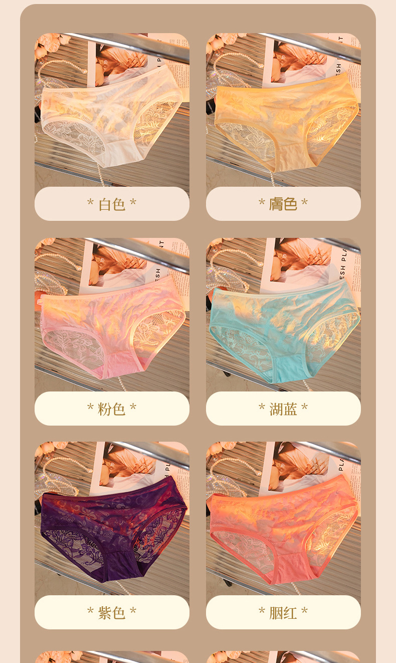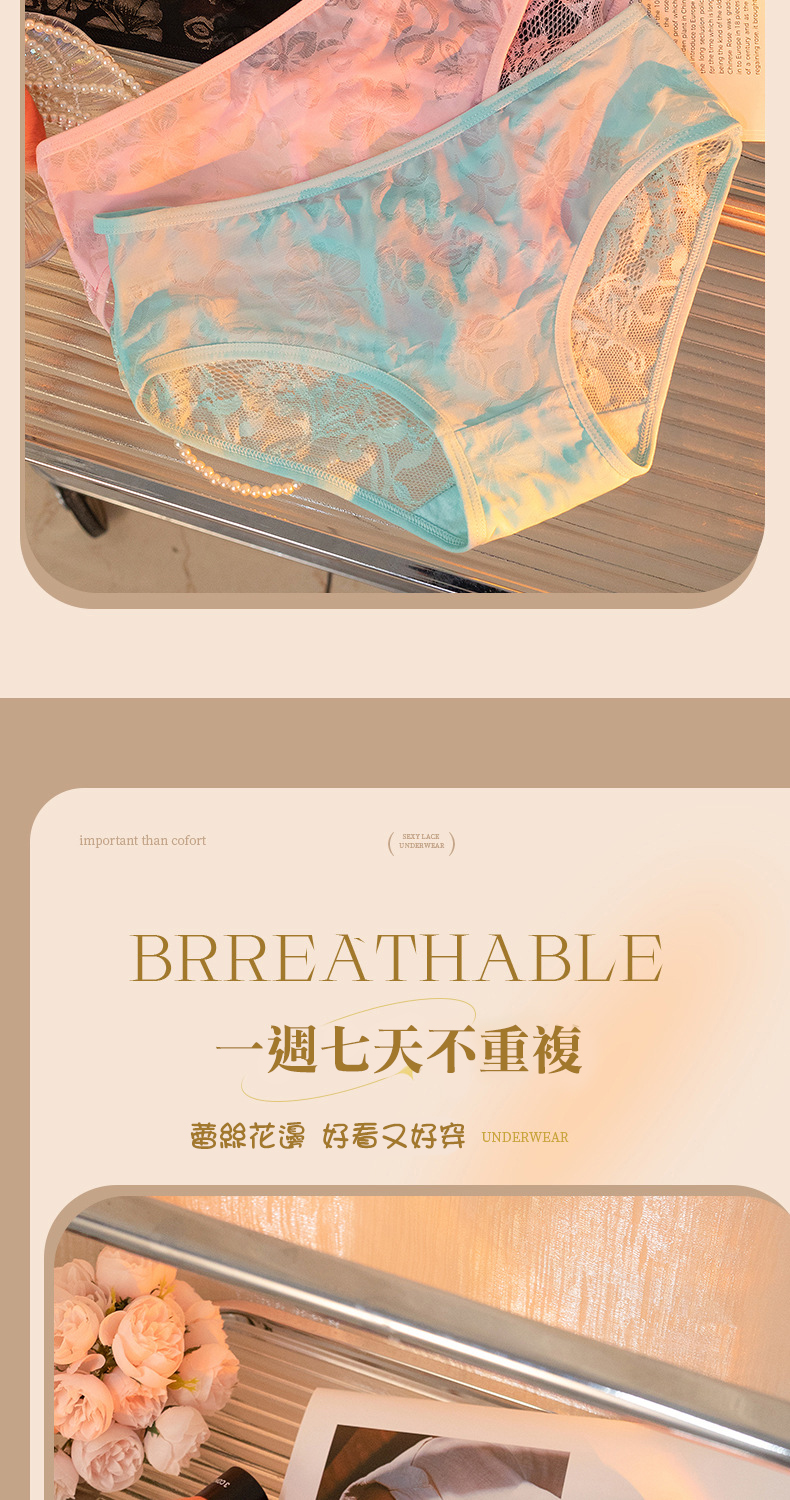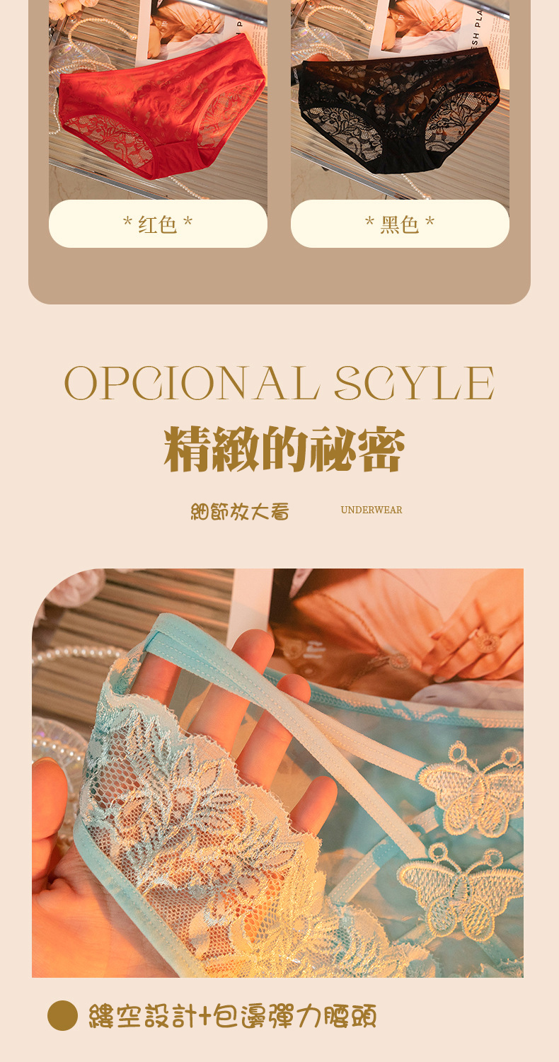 新款性感屁股蛋 半透蕾絲8色性感內褲 每天都讓妳穿不一樣的內褲, 嬌小體型到最大65kg都可以穿著 純棉底檔 透氣呼吸 呵護您的私密處! 8種顏色可挑選、舒適又不失性感 型號:8216 材質:80%棉綸+20%安綸 底檔:100%純棉 尺寸:L碼(50~65KG) 特色:提花、透氣、性感