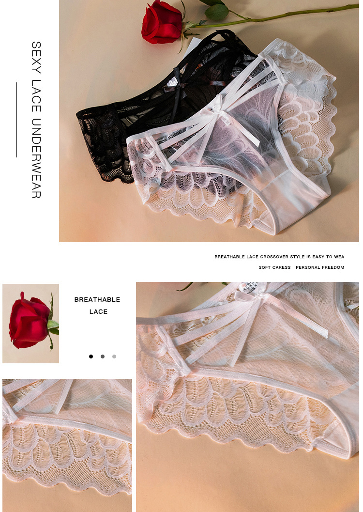 法式輕奢風 無感輕薄蕾絲三角內褲 純棉底檔 透氣呼吸 呵護您的私密處! 緞面輕膚材質、舒適又不失性感 型號:255 材質:69%棉綸+31%安綸 底檔:100%純棉 尺寸:M~XL(40~75KG) 特色:無感、透氣、性感