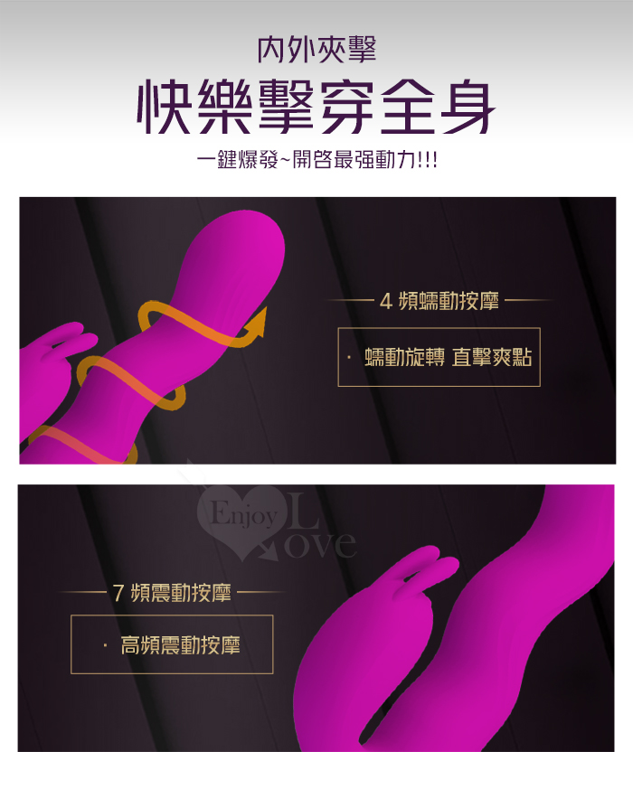 派蒂菈 ‧ Loursen 勞爾森 4蠕動+7震動 瘋狂蠕動震感內外夾擊入體按摩棒-洋紅