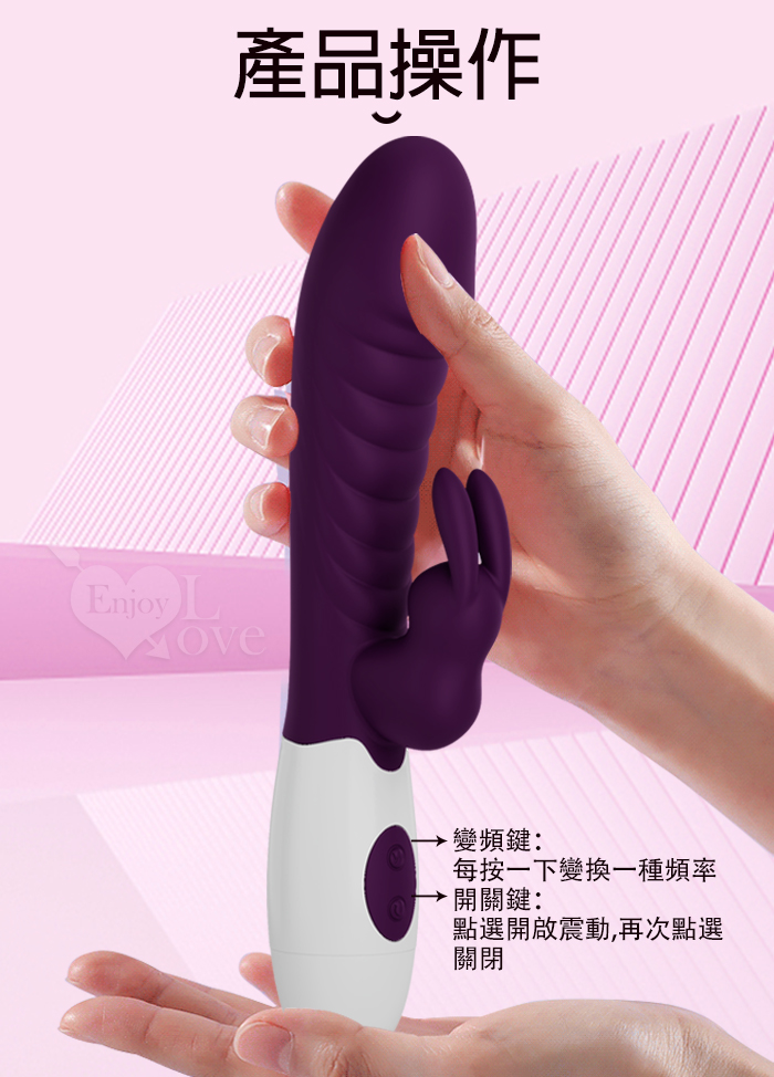 PRETTY LOVE 派蒂菈 ‧ 頑皮兔 內外雙重30頻雙頭同震按摩棒-深紫