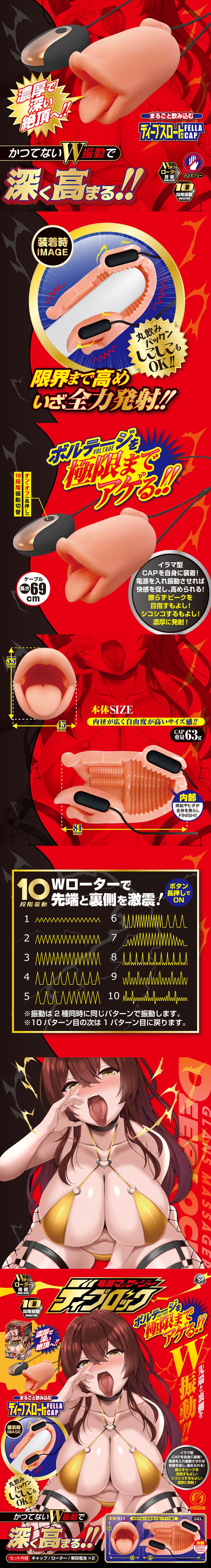 丸ごと飲み込むディープスロート型キャップと、