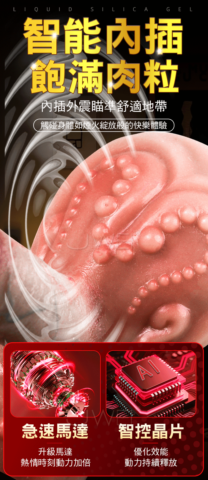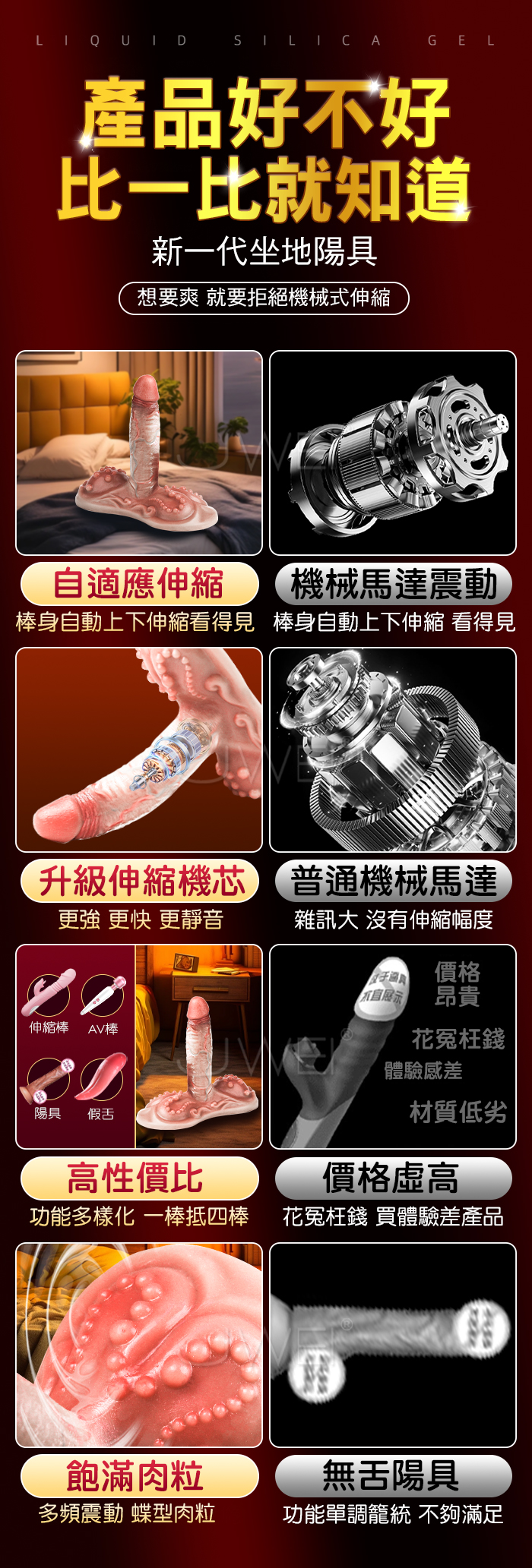 人體工學設計,全自動體感伸縮,專為亞洲女性設計,全新震動伸縮搖擺陽具 前戲生情,開發你的愉悅點,360度舒適你的歡樂點,夠大!夠粗!夠猛! 仿真復刻肉感,柔軟呵護私處,健康材質 放心嗨爽,可口含的液態矽膠! 飽滿龜頭仿真肌理,看得見的清晰紋理 摸得著的青筋褶皺 ■尺寸:大小詳如圖片標示 ■材質:液態矽膠+ABS ■特點: 6頻震動、6頻伸縮、無線遙控、加溫