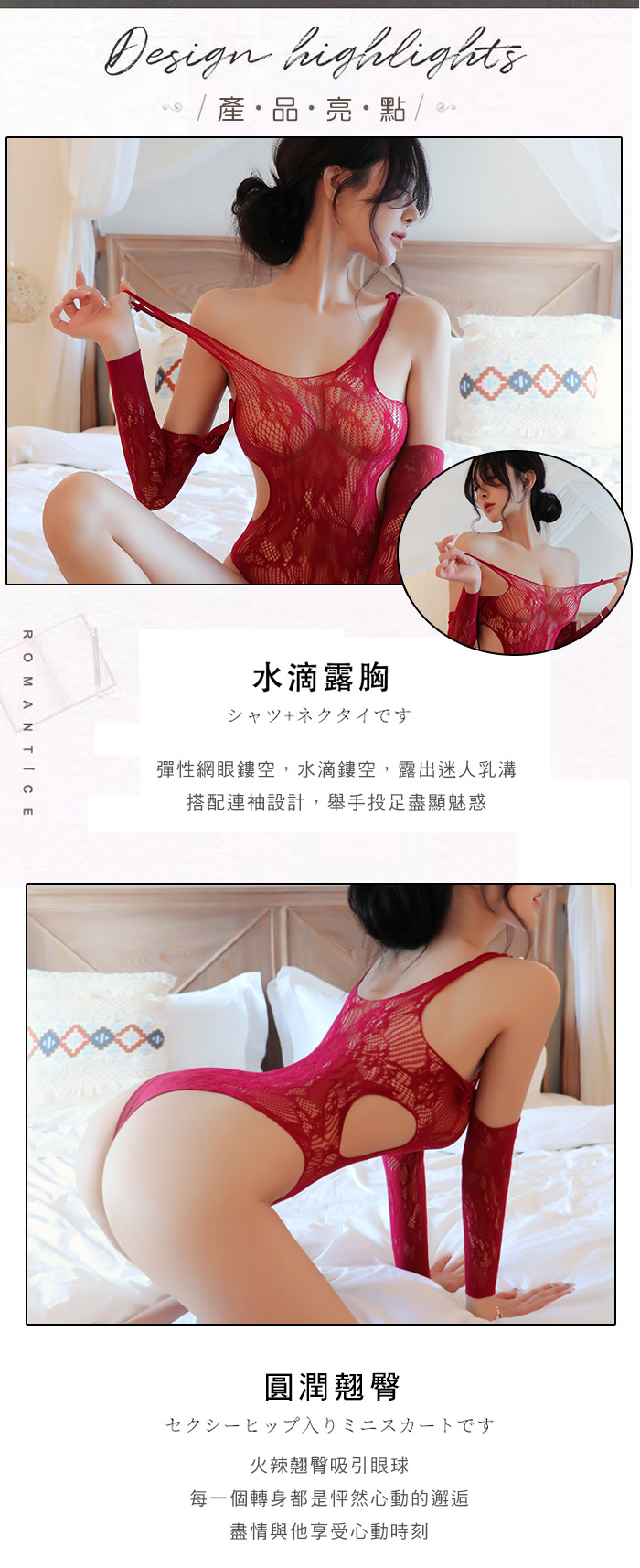 ►您現在的位置:首頁>妖嬈禍水.網眼提花透膚連體性感貓裝-紅色【單件連體手套網衣】