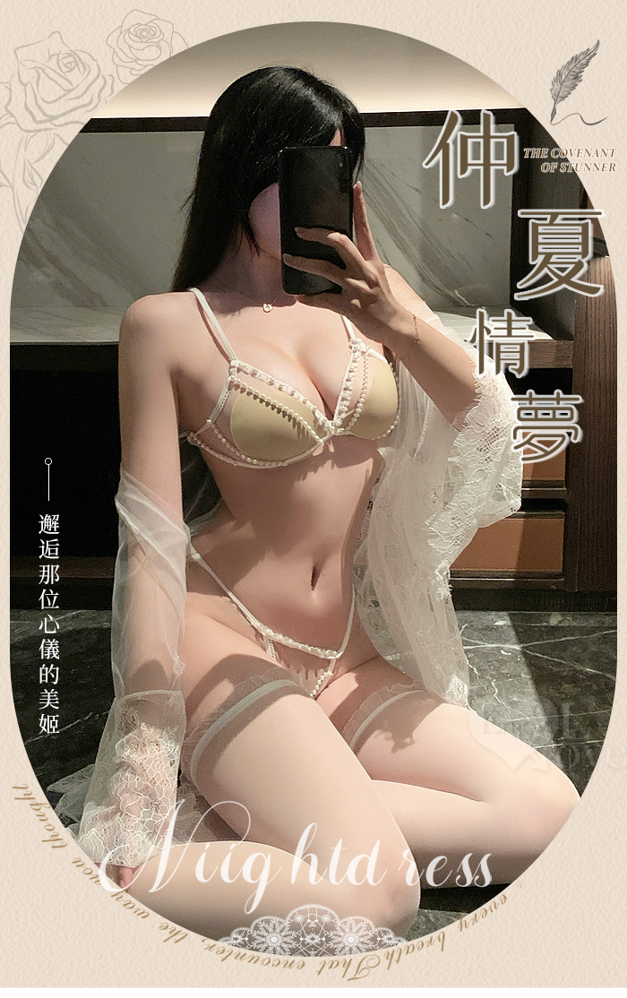 ►您現在的位置:首頁>鏤空珠串蕾絲情趣套裝|透紗罩衫+珠鏈比基尼+丁字褲三件組