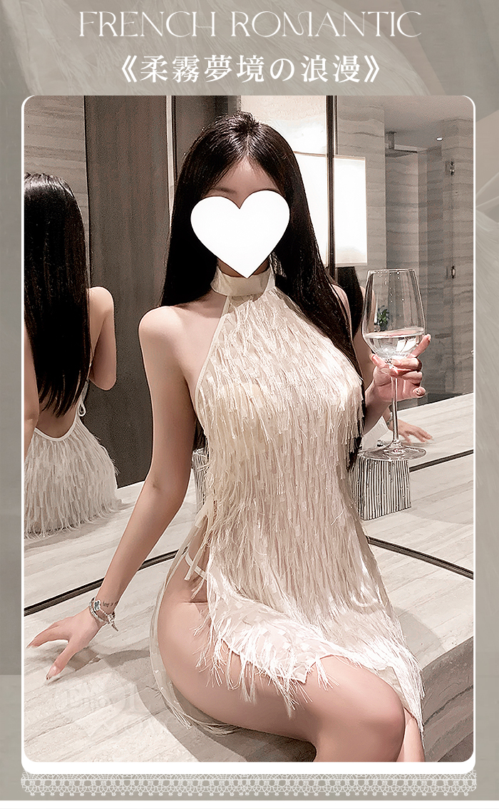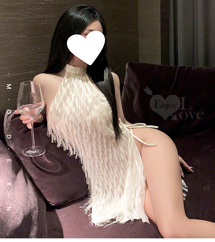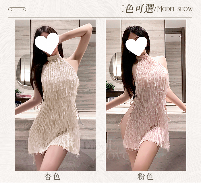 情趣夜店派對服!削肩綁脖耀眼流蘇裸背側開衩性感連身裙兩件組﹝粉﹞
