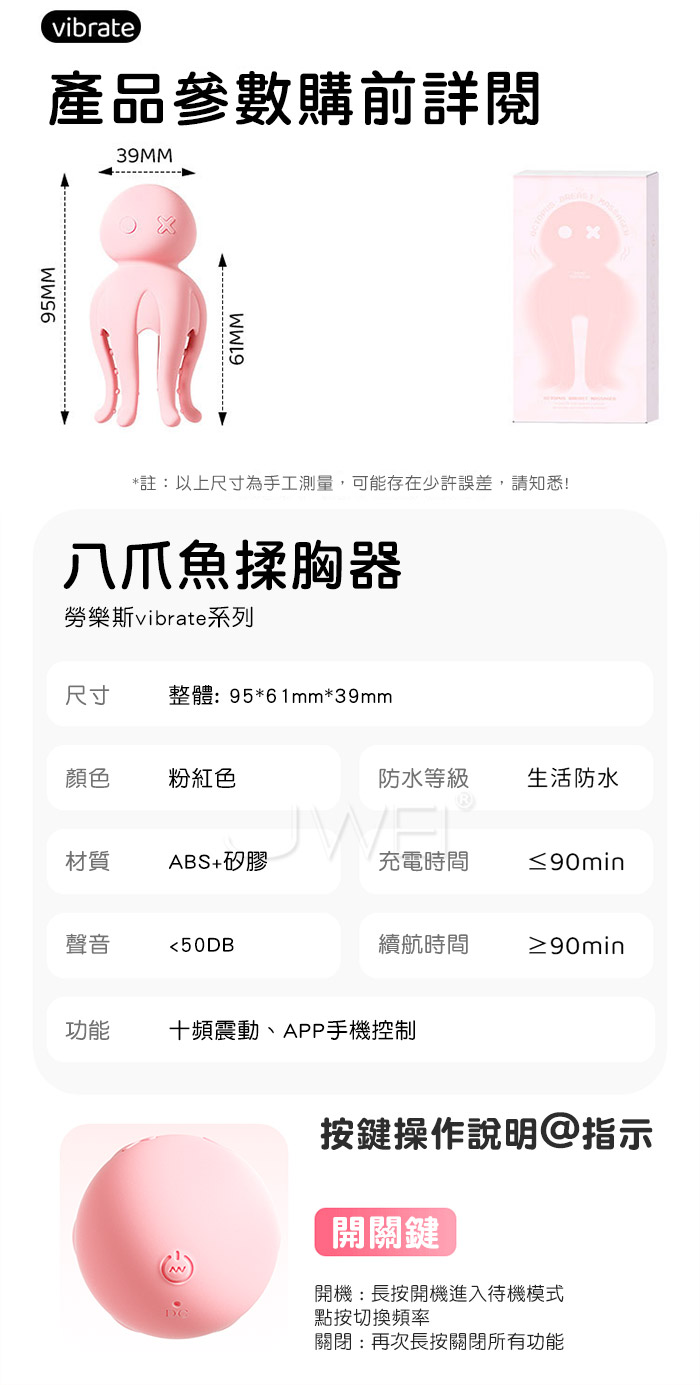 雙頭刺激,撩乳震陰,持續爽潮一刻不停 十頻震顫,強力馬達,高頻強勁深入衝擊,勢不可擋 凹凸顆粒撩撥,激情不單調,激爽更有感,如愛人一樣輕擁 產品規格 ■材質: 矽膠+皮革+金屬 ■規格: 詳如圖片標示 ■功能: 10頻震動,APP智控