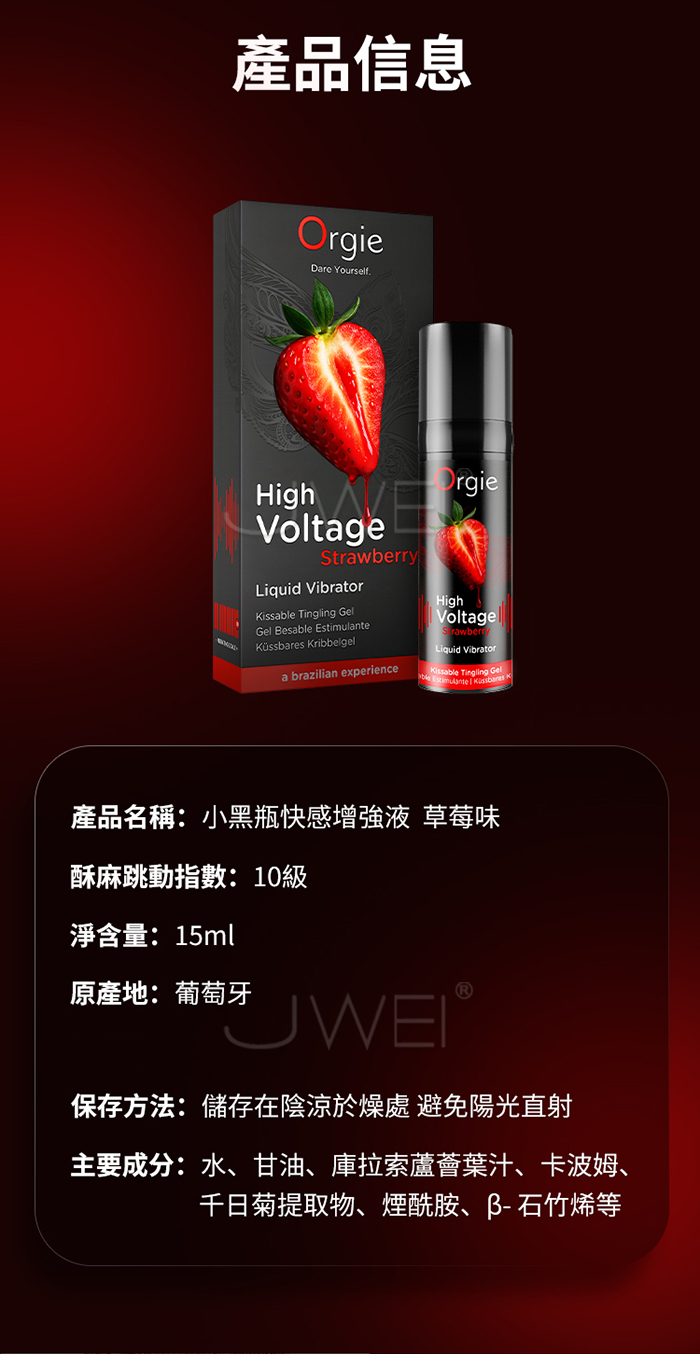 葡萄牙Orgie.Sexy Vibe! High Voltage Strawberry 10級酥麻小黑瓶快感增強液 15ml【草莓】