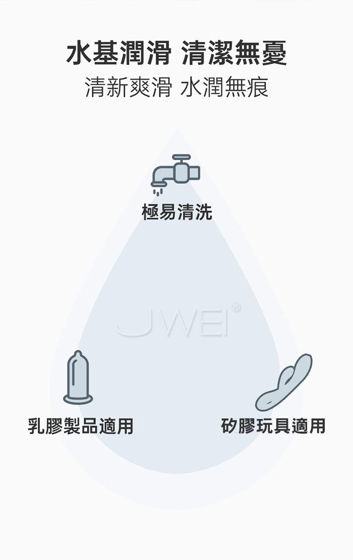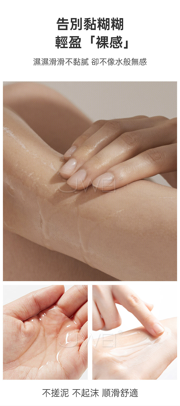 使用水性基底,水潤清爽,使用感濕滑而不黏膩,真正的[裸感]。