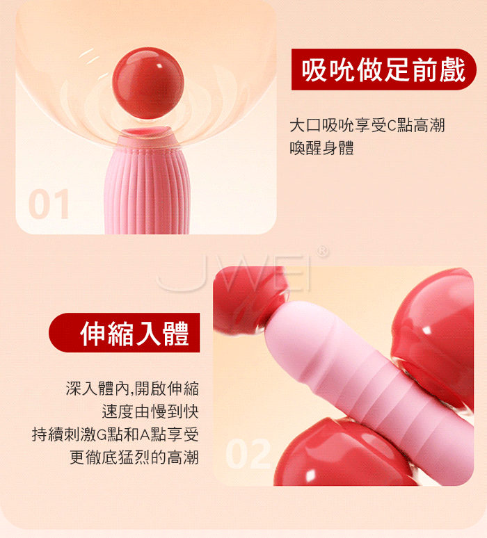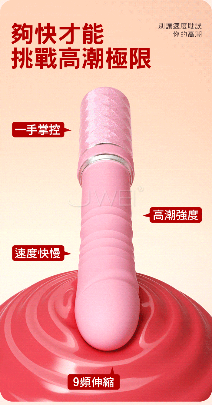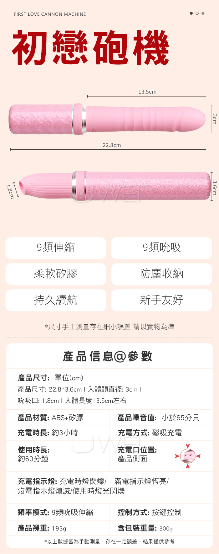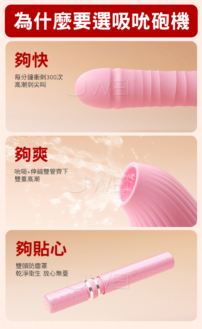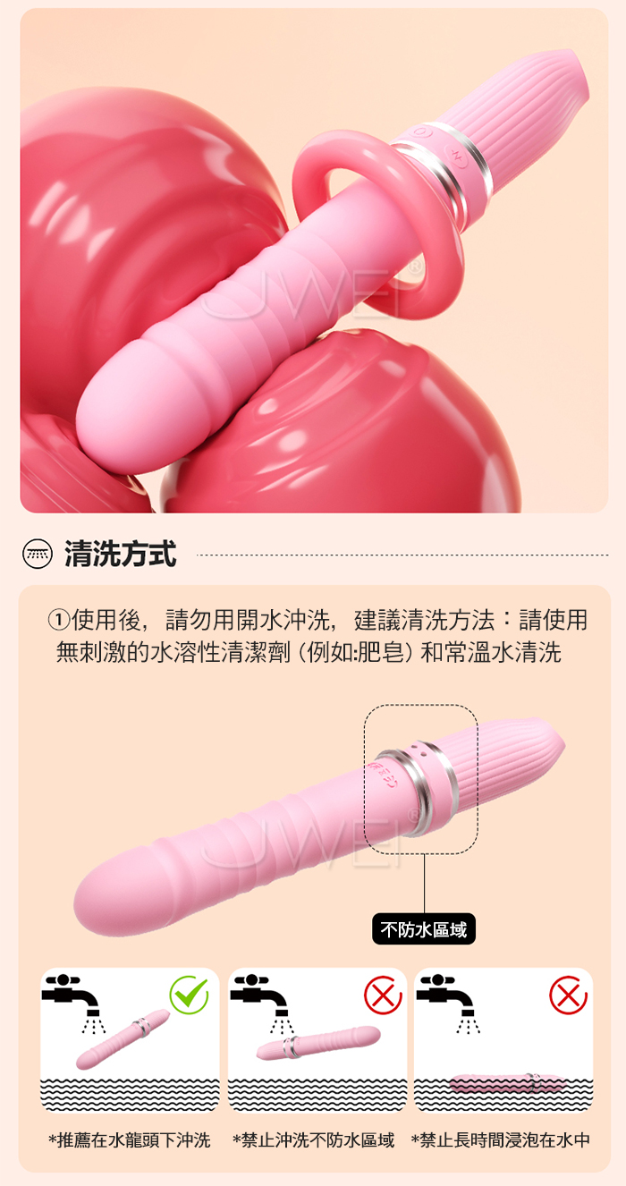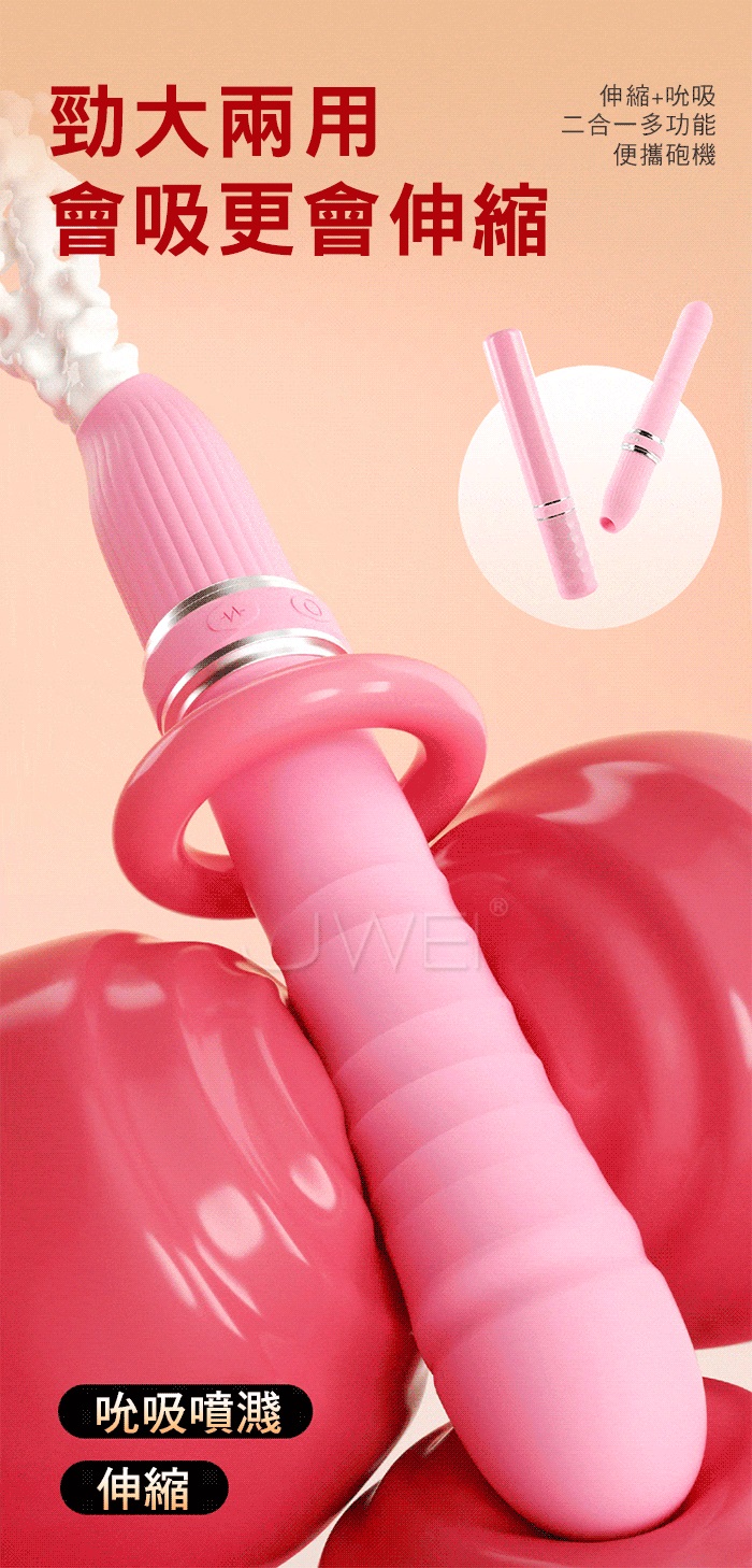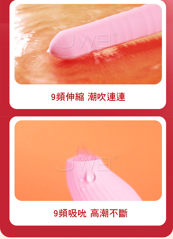勁大兩用 會吸更會伸縮!不只是砲機 一次滿足更多高潮體驗! 纏綿吸吮,引爆陰蒂高潮,更深層刺激,比真人還會吸 衝撞頂震夠快才能,挑戰高潮極限,別讓速度耽誤你的高潮! 產品規格 ■尺寸:大小詳如圖片標示 ■材質:矽膠+ABS ■特點:9頻吮吸、9頻伸縮