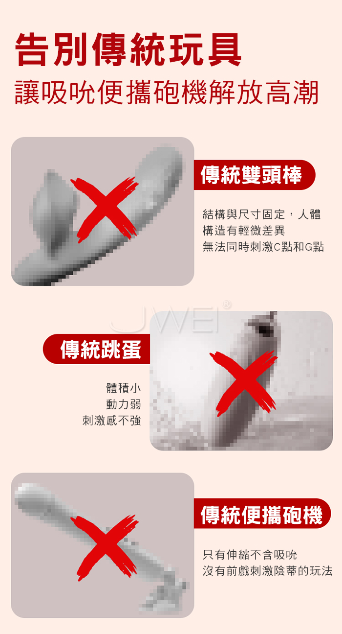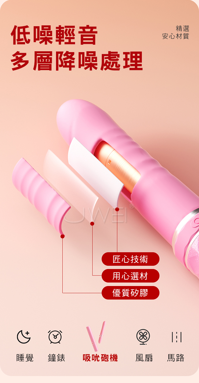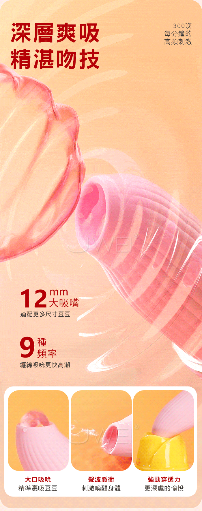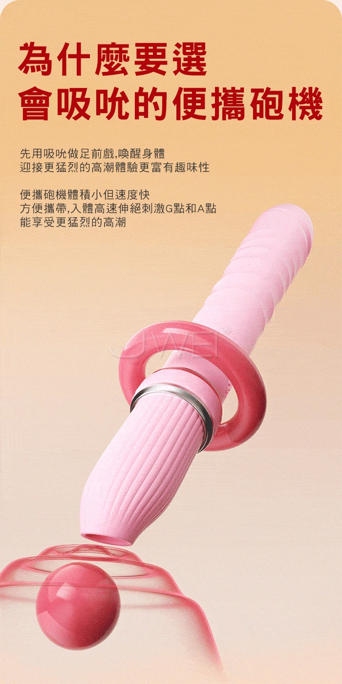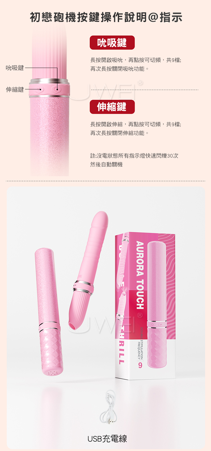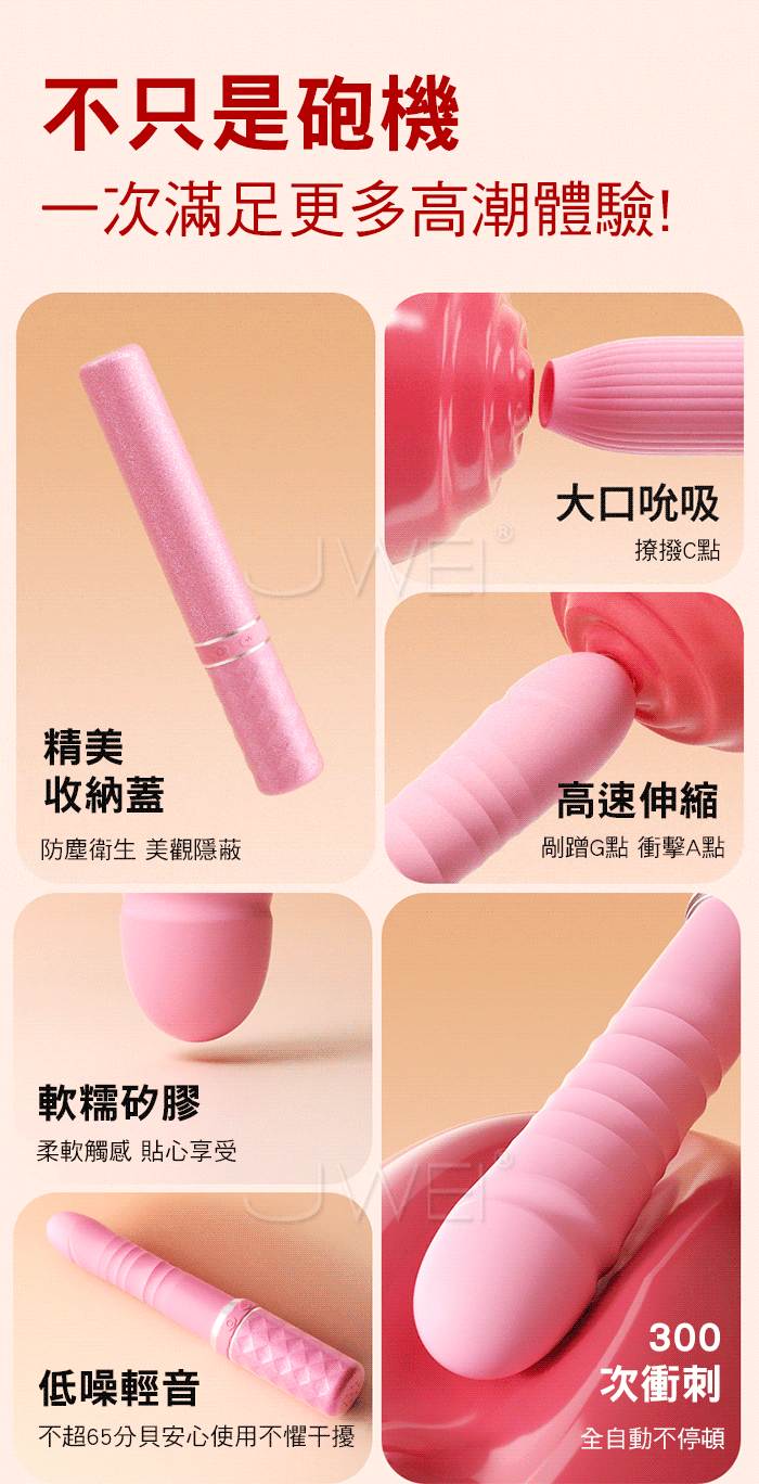 勁大兩用 會吸更會伸縮!不只是砲機 一次滿足更多高潮體驗! 纏綿吸吮,引爆陰蒂高潮,更深層刺激,比真人還會吸 衝撞頂震夠快才能,挑戰高潮極限,別讓速度耽誤你的高潮! 產品規格 ■尺寸:大小詳如圖片標示 ■材質:矽膠+ABS ■特點:9頻吮吸、9頻伸縮