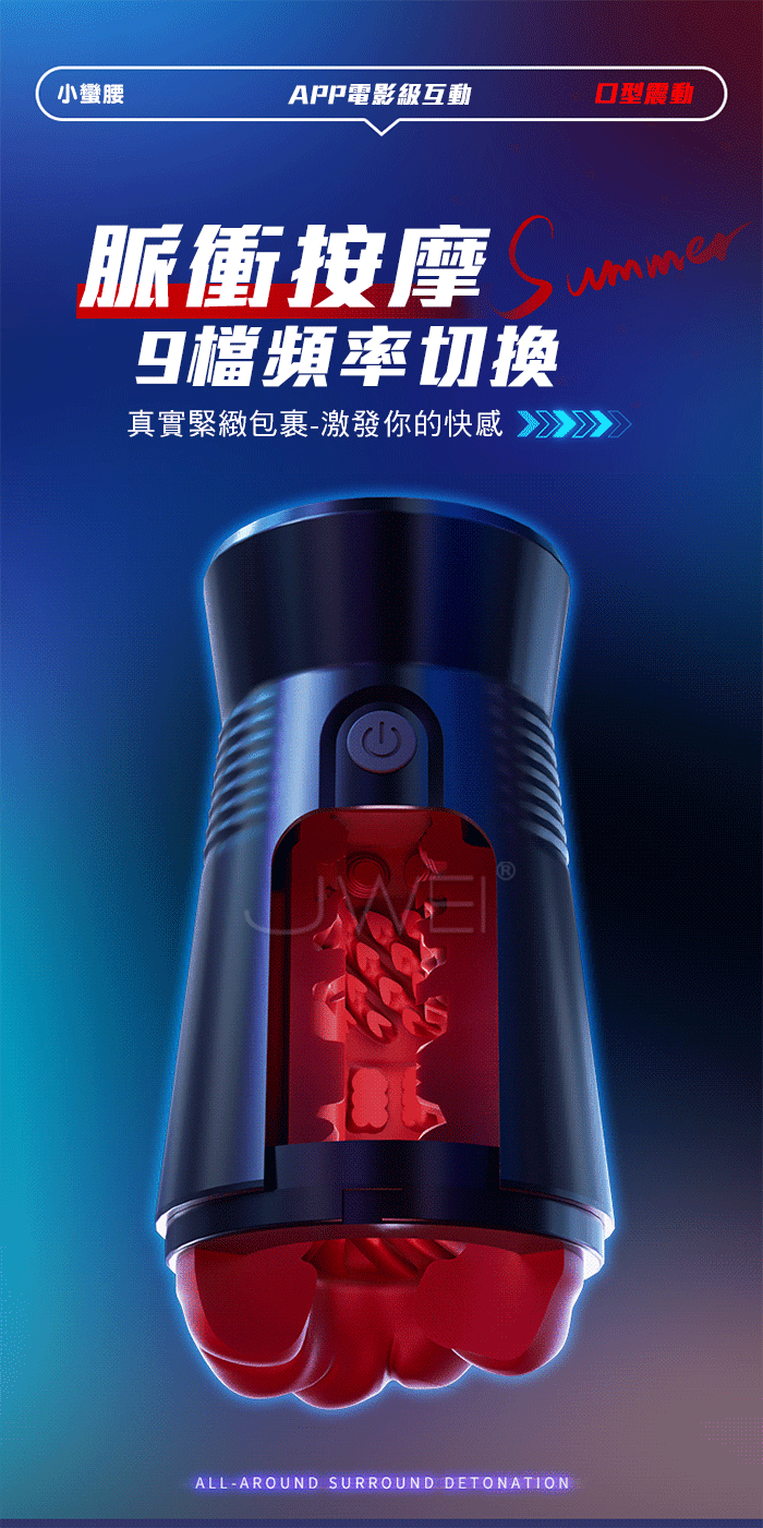 真空夾震,360度環繞舒爽,空氣負壓產生夾縮,真實緊緻包裹 擬真厚肉內膽,越深入越驚喜,軟糯酥麻入魂,此中快樂 無法言語~ 脉衝按摩,9檔震動調節,感受肉感蜜道從淺到深的多重快感 產品規格 ■尺寸:大小詳如圖片標示 ■材質:TPE+ABS ■特點:9頻震動、APP智控