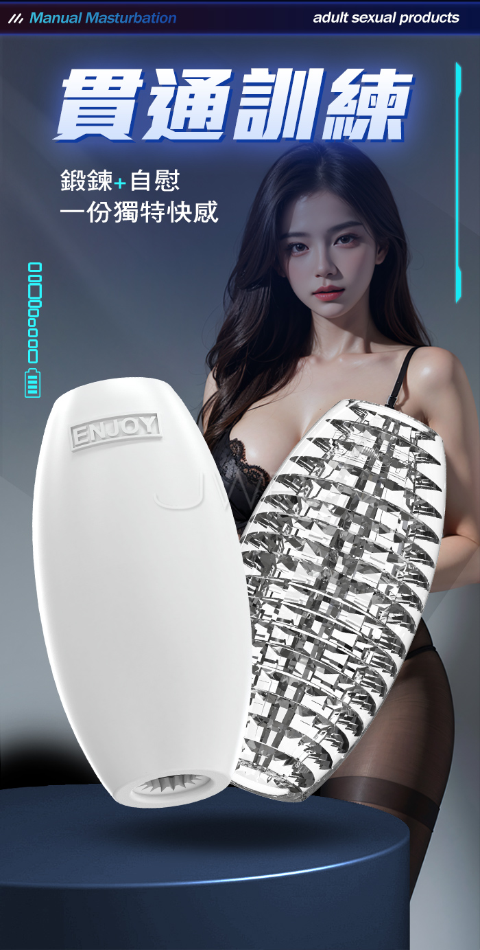 | ENJOY.雙頭貫通 鋸齒狀顆粒剮蹭 持久鍛鍊自慰套【乳白】