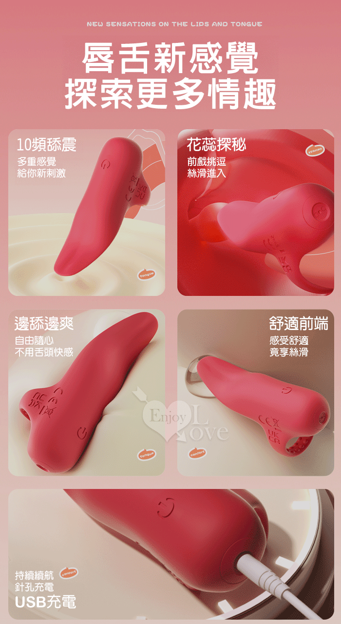 YUNMAN 云曼 ‧ 邊舔邊爽 10頻舌頭舔震動環~小舌頭穿戴手指震動按摩自慰器~女用刺激強震舌舔