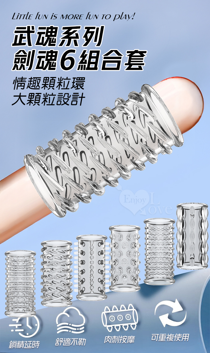 | 武魂系列.劍魂六組合套~顆粒入珠肉刺環繞鎖精延時陰莖加強環~成人性趣輔助用品-6款體驗裝﹝透明白﹞