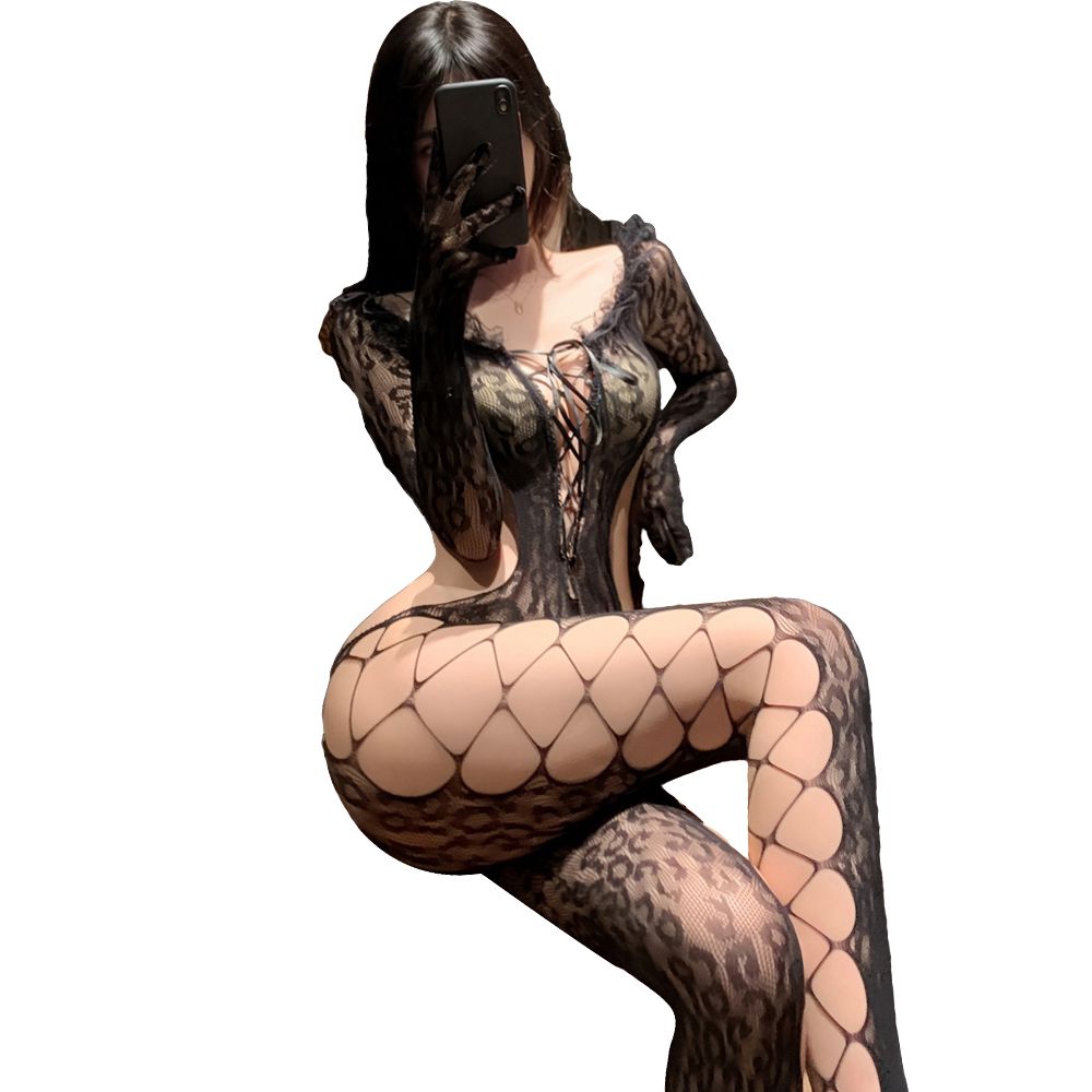 | 性感獵豔豹紋連身網襪ZY97