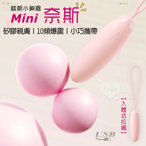 Mini 奈斯 ‧ 糕朝小神器~10頻激震爆發入體式拉繩長跳蛋﹝矽膠親膚/小巧攜帶﹞粉