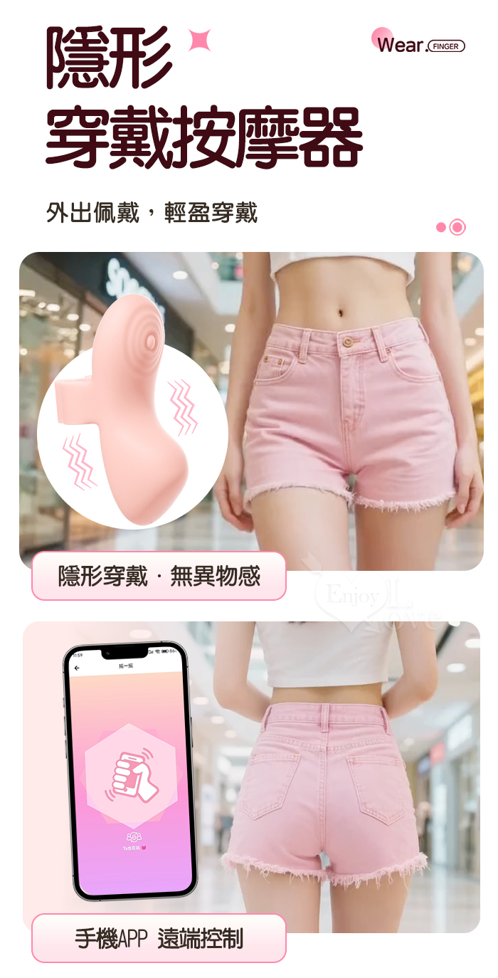 ROSELEX 勞樂斯 ‧快樂指尖 ‧ 10頻深層精準震顫陰蒂刺激調情自慰兩相宜穿戴按摩器 - 可手機APP遙控﹝具兩種操控模式﹞紅