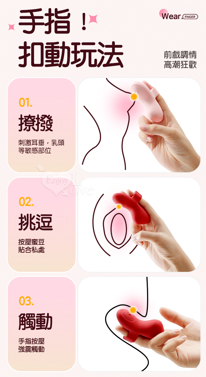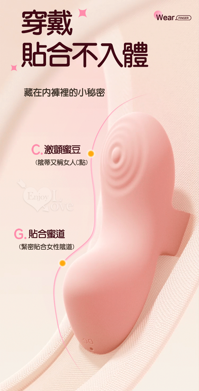 ROSELEX 勞樂斯 ‧快樂指尖 ‧ 10頻深層精準震顫陰蒂刺激調情自慰兩相宜穿戴按摩器 - 可手機APP遙控﹝具兩種操控模式﹞粉