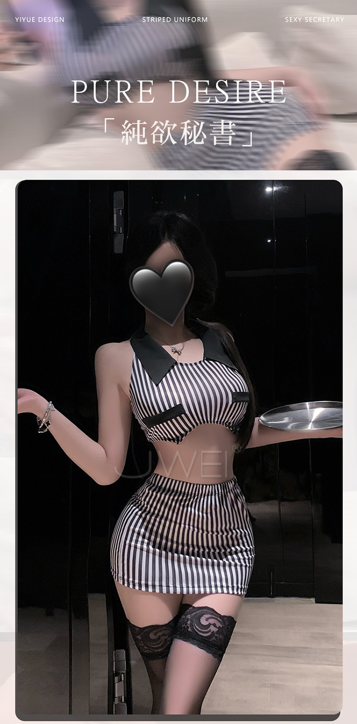 | 純欲秘書.條紋裹胸放大胸型露腰美背包臀秘書套裝【上衣+包臀裙+T褲】
