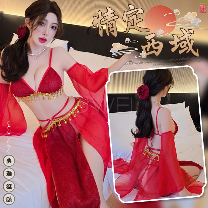 ►您現在的位置:首頁>霓裳魅影.薄紗透視美背繫帶古風舞姬肚兜套裝【肚兜+短裙+披肩-棗紅】
