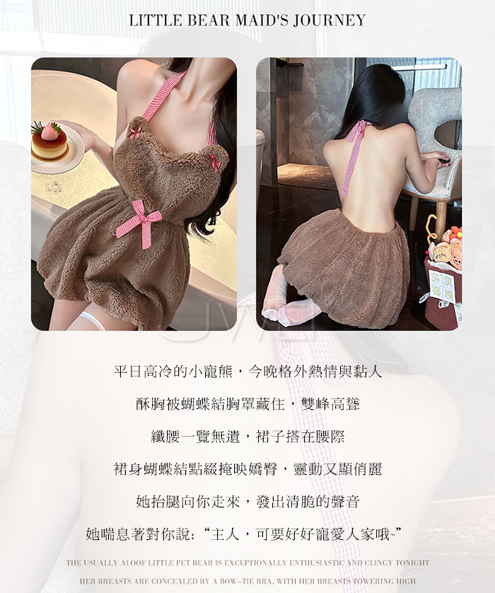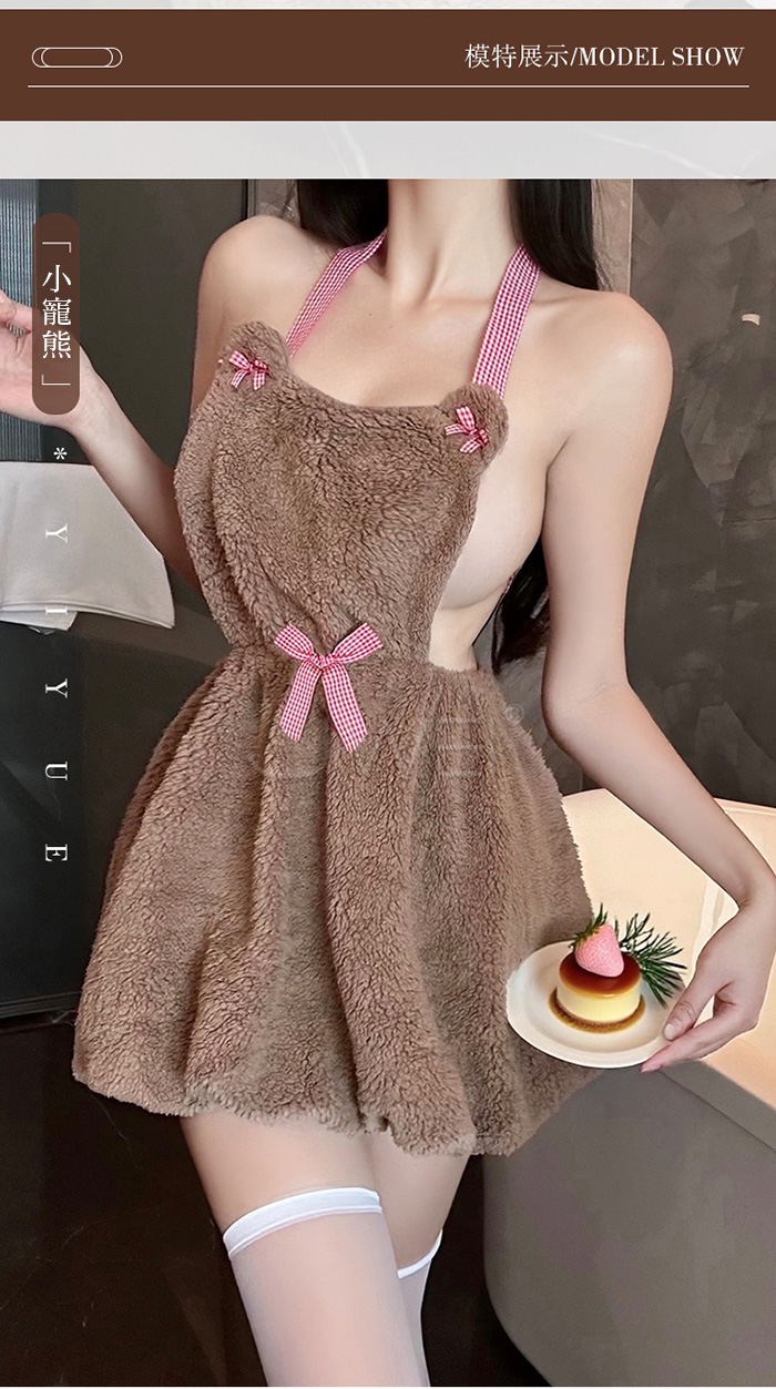 小熊女僕.呆萌酥甜蝴蝶結繫帶小熊絨毛掛脖裙