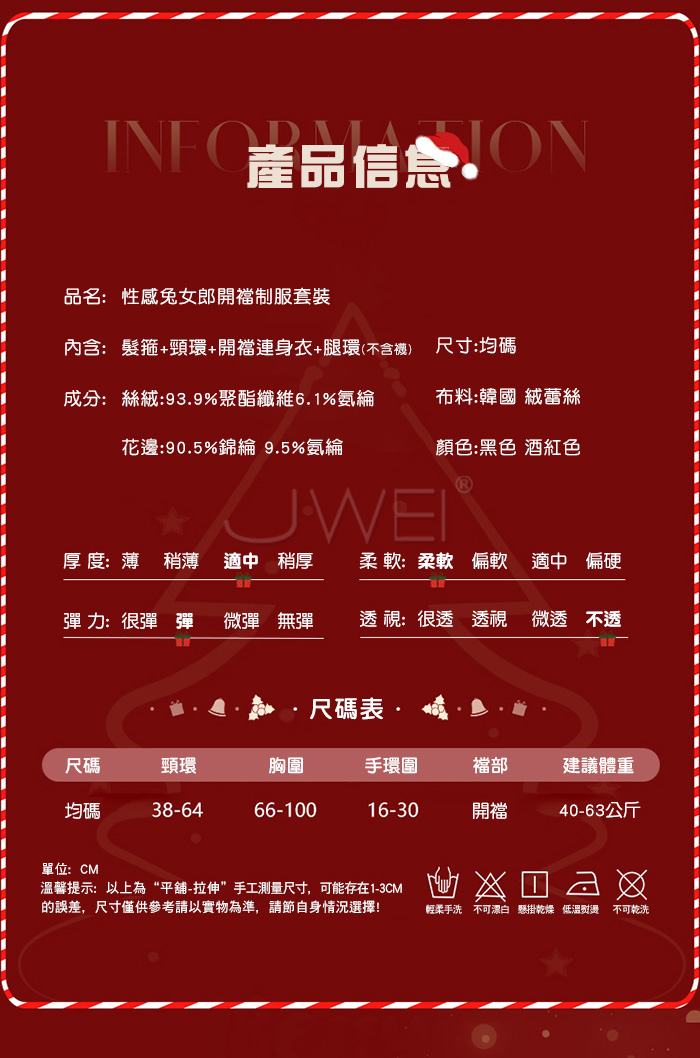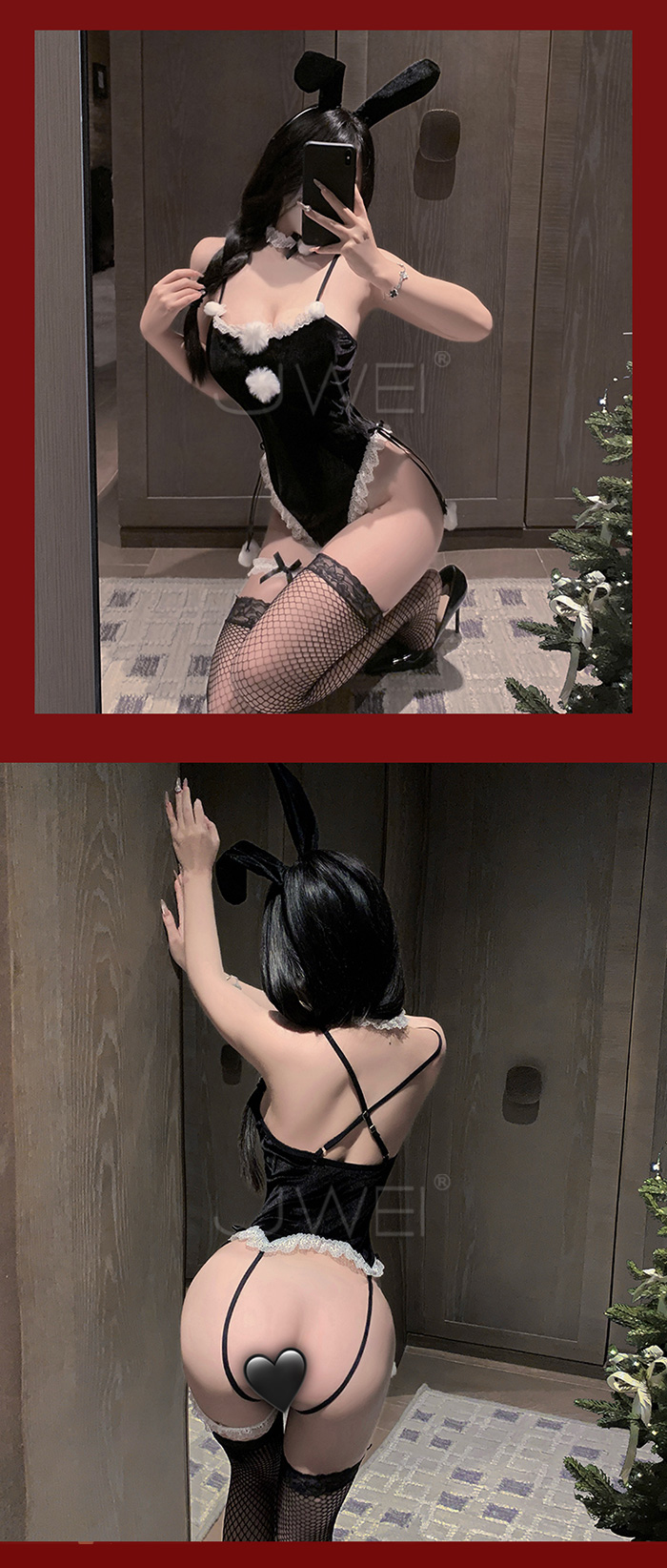 ►您現在的位置:首頁>耶誕慾兔.蕾絲邊低胸毛球點綴絲絨性感兔女郎開襠連體衣【髮箍+頸環+連身衣+腿環-酒紅】
