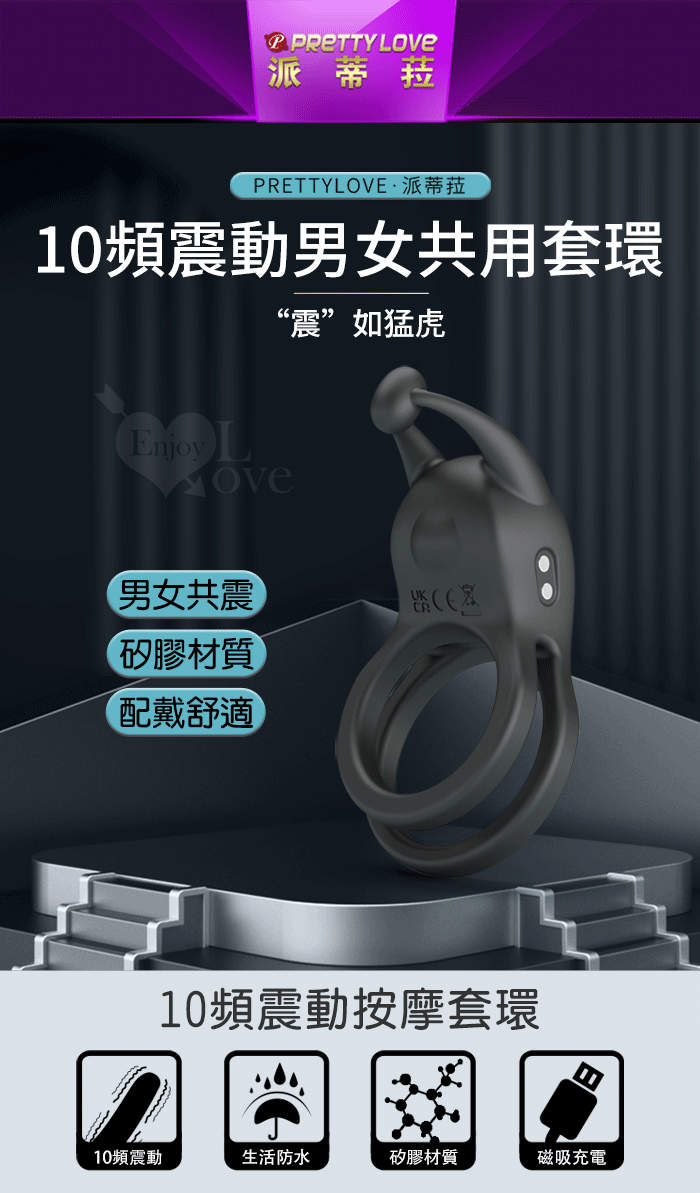 派蒂菈 ‧ GOODWIN 古德溫 疾速撩震外陰鎖精雙蛋蛋套環﹝男女同樂/10段強震/矽膠舒適佩戴/磁吸充電﹞
